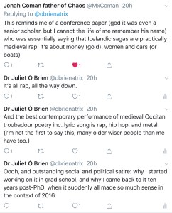 This book is part of a group from a similar time: twixt the end of one century and the first quarter of the next, a century after horrors of war (an unnecessary conflict at that, triggered in part by colonialist cupidity), writing and so remembrancing that which is danger of loss. Like its kith and kin, this book memorialises a literature that was a complex mixture of what modernity would call “written” and “oral”; in so doing it helped to save it from oblivion, but at the risk of killing improvisational witty liveliness, fossilising and petrifying as a monument (turning to stone isn’t necessarily bad; I’m also thinking about those metaphors in relation to @jeffreyjcohen on stone. But I digress.)