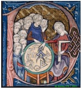 (Unrelated image: marginal drollerie in “The Maastricht Hours.” Liège 14th c. @BLMedieval Stowe 17 f. 197v.)
